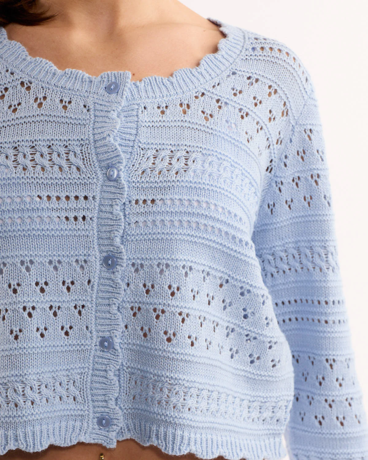 • Lightweight pointelle knit with airy, textured detailing